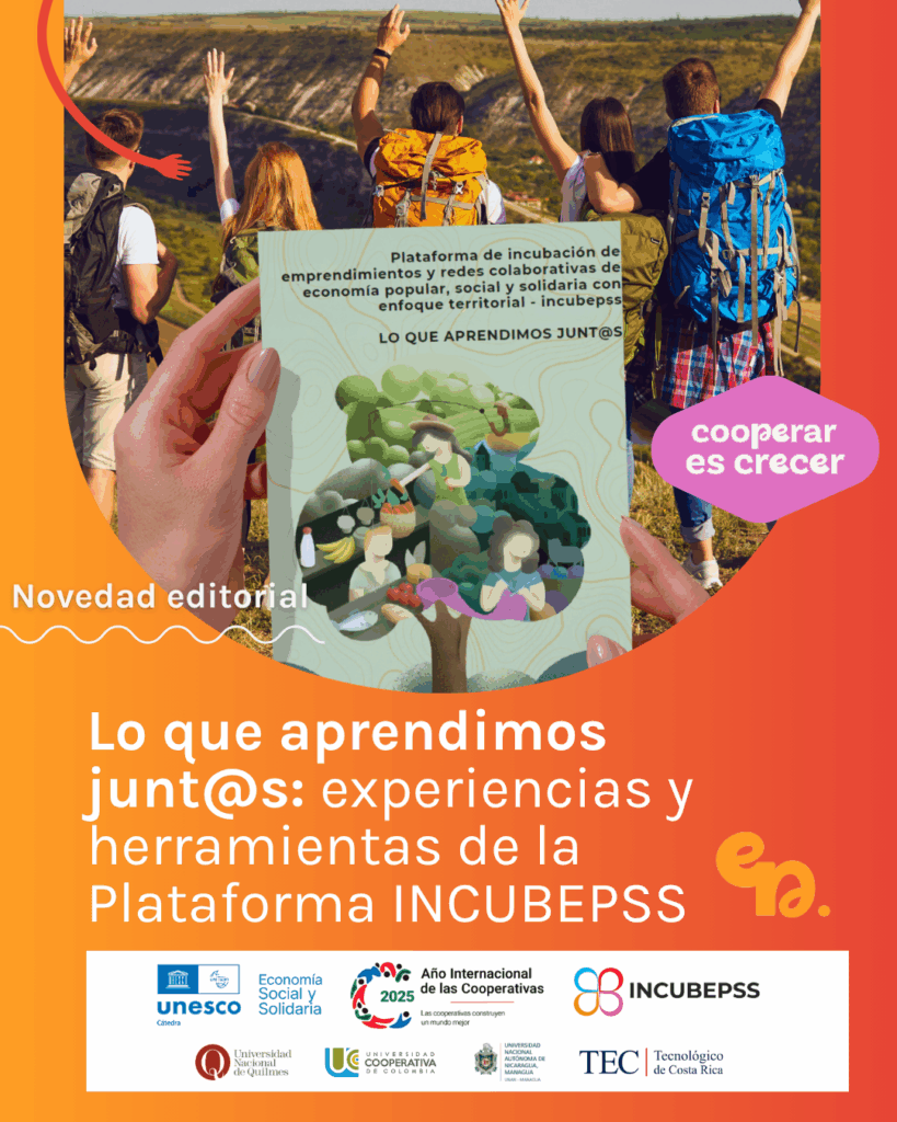 La publicación “Lo que aprendimos junt@s” reúne los principales aprendizajes, metodologías y reflexiones surgidas del trabajo colaborativo desarrollado en el marco de la Plataforma INCUBEPSS, un proyecto interuniversitario latinoamericano orientado a fortalecer las prácticas de incubación de emprendimientos y redes de la economía popular, social y solidaria (EPSS).